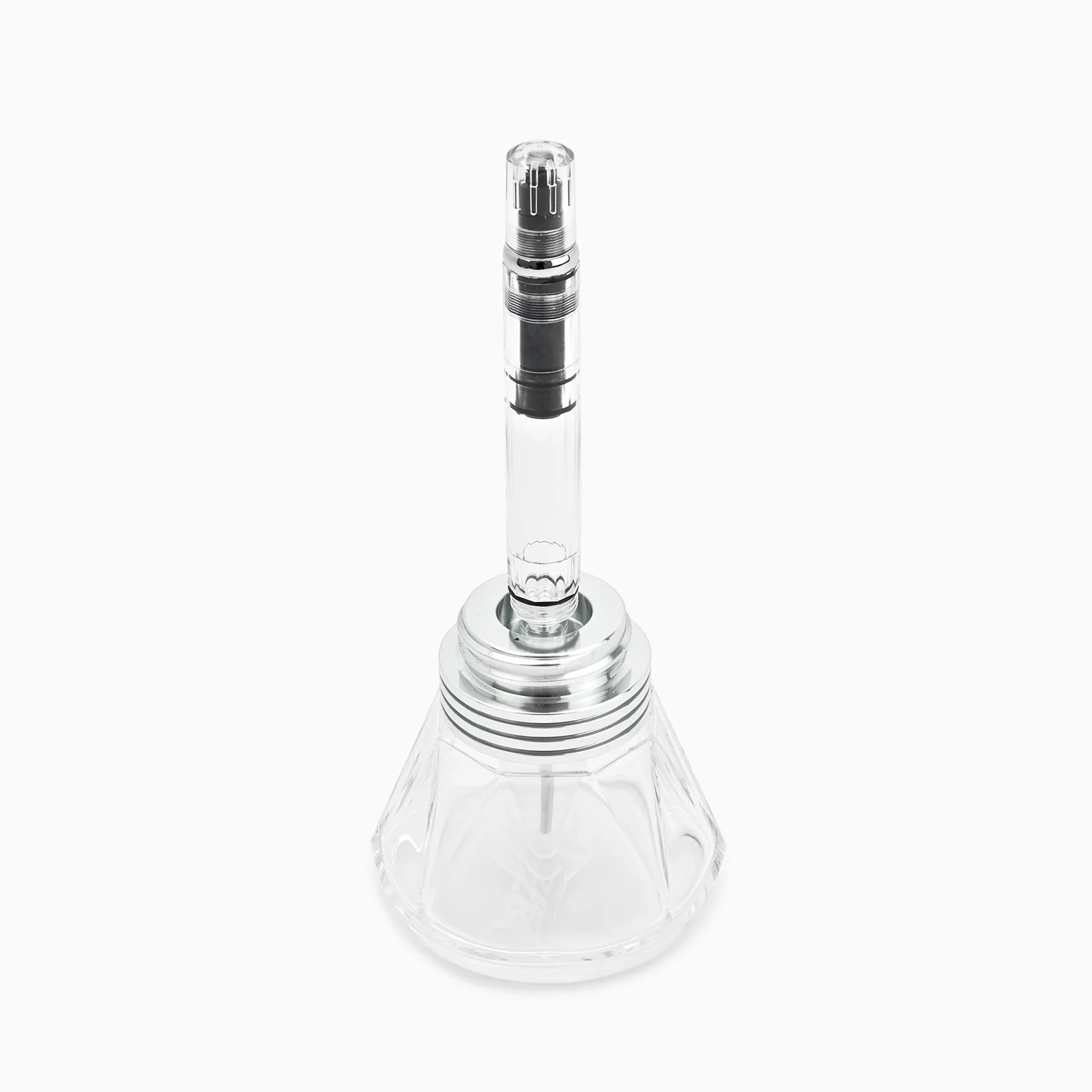 As an added benefit to those who own the Diamond 530, 540, 580 or Mini fountain pen you can use the colored band attachment to refill your TWSBI fountain pen without having to use the nib at all! Simply unscrew the front section of your Diamond fountain pen and attach it to the filling apparatus. Turning the piston knob of the fountain pen will draw the ink up into your pen. No more inky fingers!!Ā